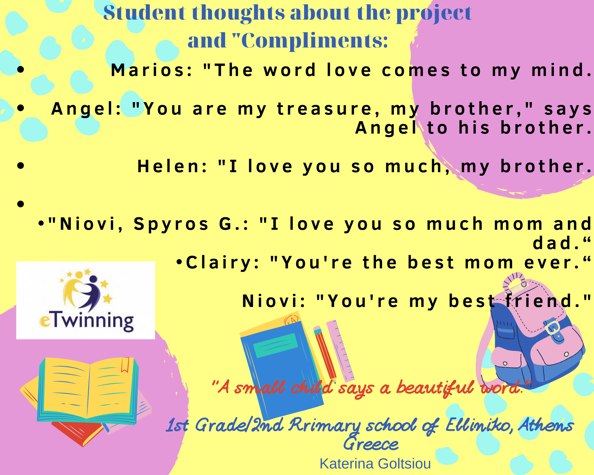 Οι μαθητές μοιράστηκαν σκέψεις και φιλοφρονήσεις που τους έρχονται στο μυαλό λόγω του project "A small child says a beautiful word."