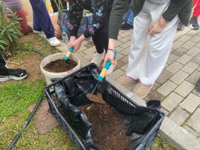 Σε συνέχεια των δράσεών μας για το Περιβαλλοντικό Πρόγραμμα Green Day, προχωρήσαμε σε ένα ακόμη σημαντικό βήμα: αξιοποιήσαμε το φυσικό λίπασμα που δημιουργήθηκε από την κομποστοποίηση του σχολείου μας και το χρησιμοποιήσαμε για νέες φυτεύσεις!