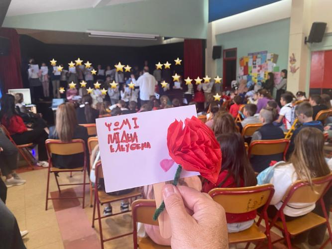 Τη Δευτέρα 17 Νοεμβρίου γιορτάσαμε την ημέρα του Πολυτεχνείου. Μέσα στις τάξεις οι μαθητές εκαναν διάφορες δραστηριότητες για να τιμήσουν αυτήν την ημέρα μνήμης και στη συνέχεια όλο το σχολείο παρακολούθησε στην αίθουσα εκδηλώσεων τη χορωδία του σχολείου, υπό την διεύθυνση του μουσικού μας κου Αντώνη Χανιώτη. Η εκτέλεση των τραγουδιών ήταν άψογη και συγκινητική.