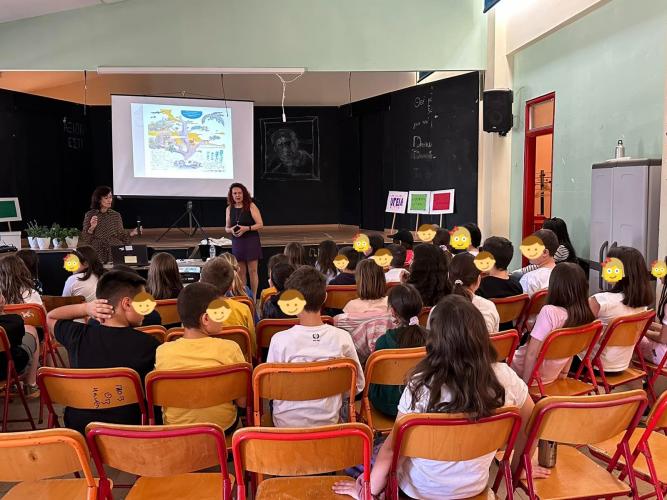 Η εκπαιδευτικός Αγγλικής Γλώσσας και υπεύθυνη της βιβλιοθήκης του 2ου Δημοτικού σχολείου Ελληνικού κα. Νέλλη Κουμουδή προσκάλεσε την εκπαιδευτικό, συγγραφέα και ποιήτρια Σωσώ Μακρή να παρουσιάσει το υπό έκδοση παραμύθι της την "Ιστορία της Ίριδας.