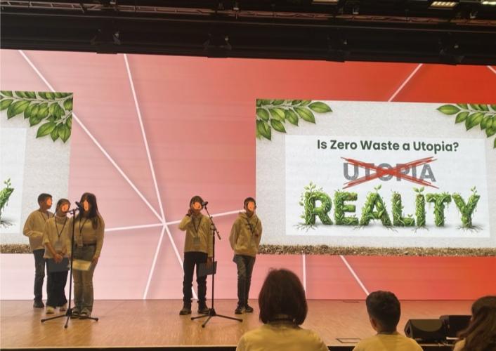 Η παρουσίαση των παιδιών μας έκλεψε τις εντυπώσεις, ολοκληρώνοντας με το συγκινητικό τραγούδι «Save the Planet». Οι στίχοι των εκπαιδευτικών κ. Κουμούδη και κ. Λαμπρακάκη, σε μελωδία του κ. Χανιώτη, πλαισιώθηκαν από ένα βίντεο με όλους τους μαθητές των τάξεων να ενώνουν τις φωνές τους για τον πλανήτη.